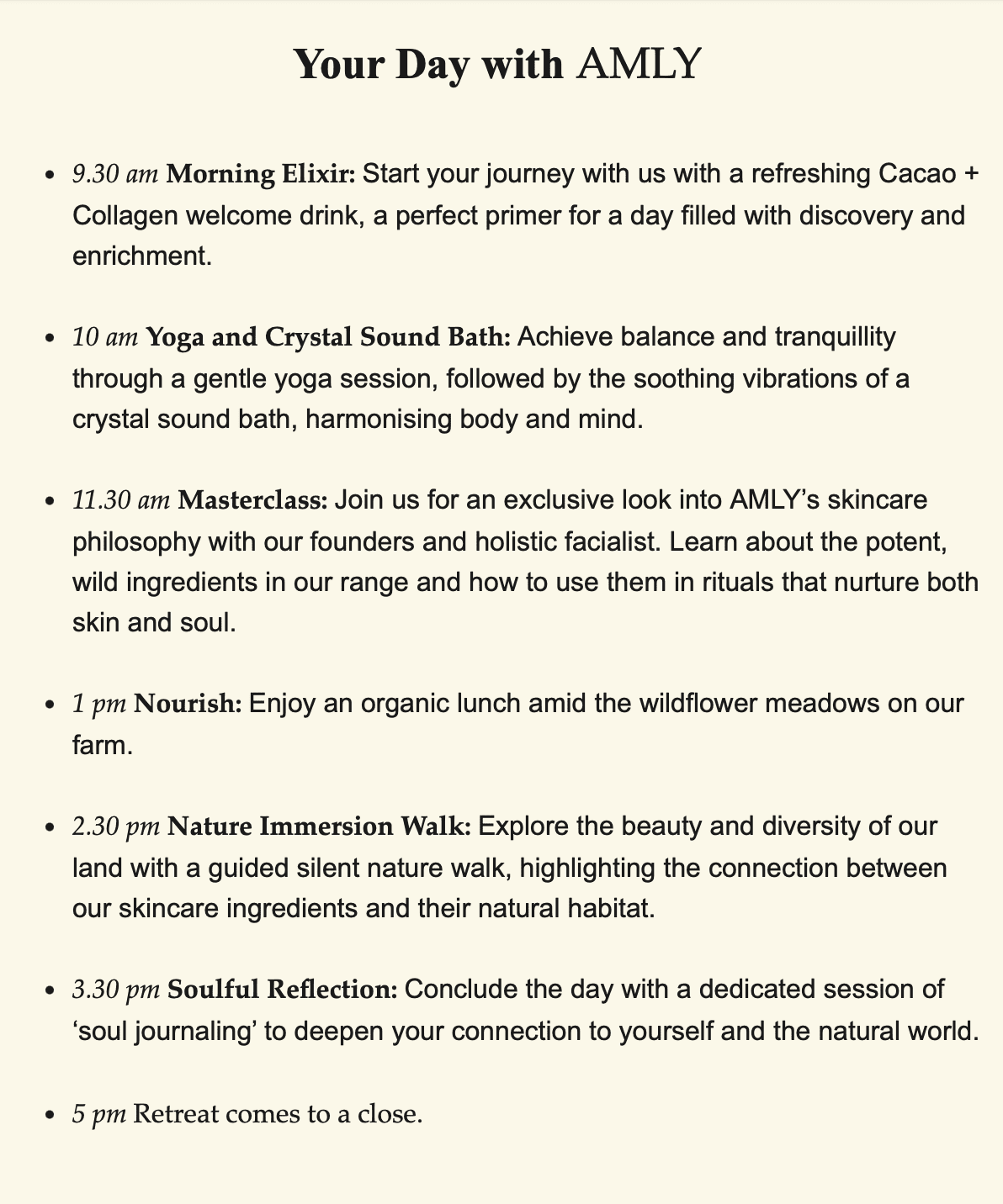 Det var netop i anledning af et helt nyt Amly-produkt, at jeg netop har været på besøg derovre et par dage. Og udover at opleve både Amlys unikke Reawaken Facial (som vi lover at tage til Danmark til en event også), så var det en hel dag med soul soothing og natur.