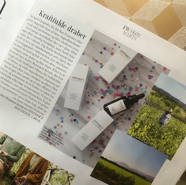 Det har været fantastisk at åbne magasinerne på det seneste. For ligesom som de internationale skønhedsredaktører og über-bloggere, så er også de danske skønhedsdamer faldet for kult-ansigtsolien Vintner’s Daughter. Det vidste jeg godt, at de ville, for jeg har jo selv brugt den længe inden jeg satte den på hylderne i min lille skønhedspavillon i Kongens Have. Jeg elsker den glød, den giver til huden, og endvidere det faktum, at jeg kan lægge pudder og foundation på hylden, når jeg bruger den. Men her er lidt af, hvad de siger om den: ELLEs Anne P skriver, at “min hud er ret forkælet og forholdsvis mættet, men jeg kan altså se en forskel på min hud, når jeg bruger den. Den bliver ligesom lidt mere modstandsdygtig. Jeg har tendens til at have en reaktiv og lidt betændt hud, så den tager taknemligt imod denne. 6 dråber om dagen er alt, hvad du skal bruge, så selvom den er noget pricy, så er den alle pengene værd”. Mens Feminas Vibeke Nielsen testede den og skrev, at “allerede efter første uge var min hud mere sund at se på. Og nu, efter ni uger, har jeg fået tydeligt mindre porer på næsen og på kinderne, så ja, olien virker”. Eurowomans Bea Fagerholt har netop udnævnt Vintner’s Daughter blandt de tre bedste grønne skønhedsmærker lige nu, og Børsens redaktør Marie Kaufholz har hypet den i Børsen Pleasure i dag. Nå ja, så er der Covers tidligere skønhedsredaktør Liv Winther, der kalder den ‘a dry skin saver’. What’s not to like?