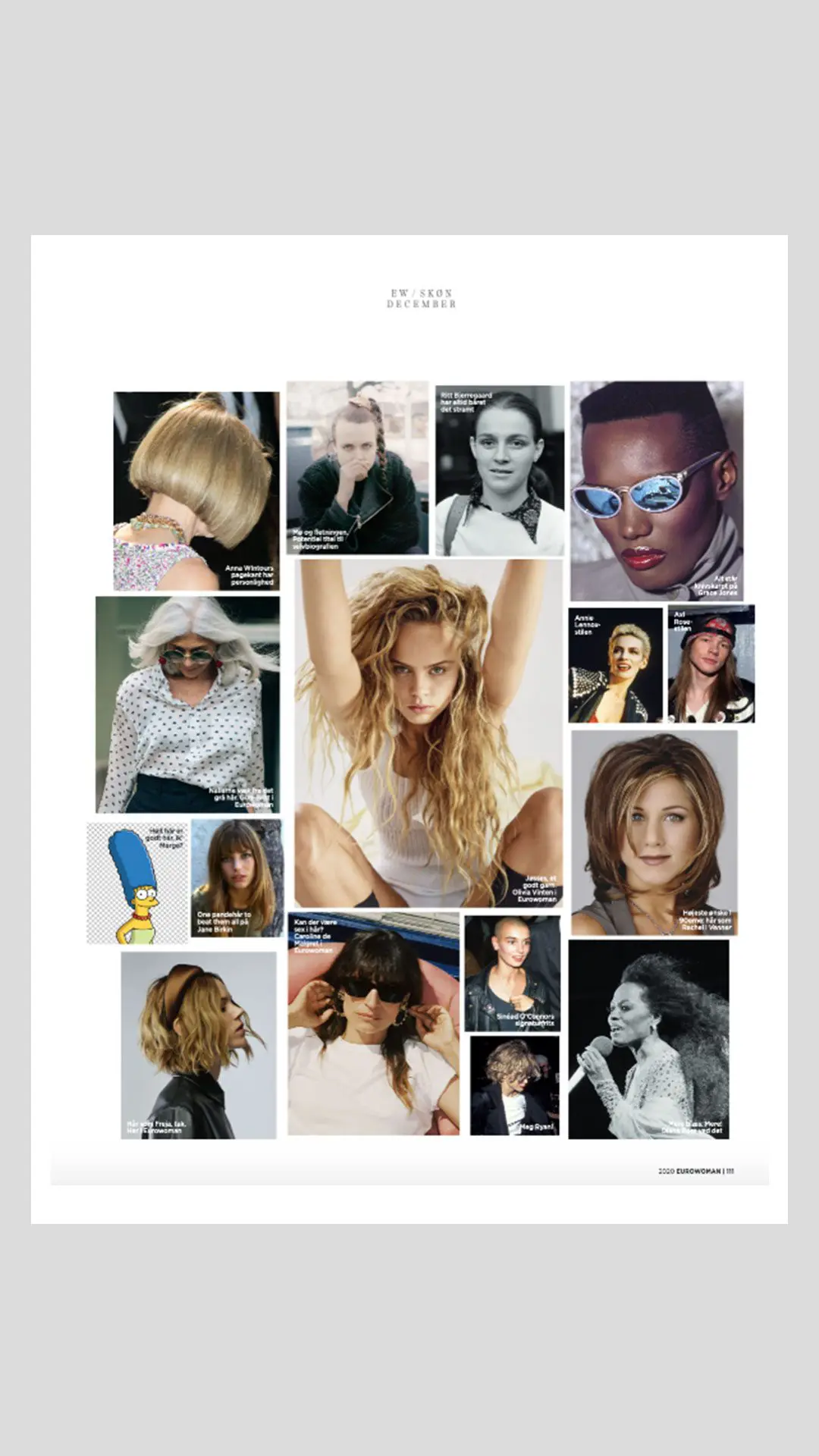 Mange tak for taletid i artiklen om hår i nyeste nummer af Eurowoman. Artiklen er skrevet af skønhedsredaktør Marie Lodberg, der leder efter svaret på om personligheden sidder i håret. Det spørger hun forskellige personer om, herunder Lars Skjødt fra Hårklinikken, træningsguru Anne Bech der har mistet sit hår i forbindelse med sit kemoforløb og så undertegnede.