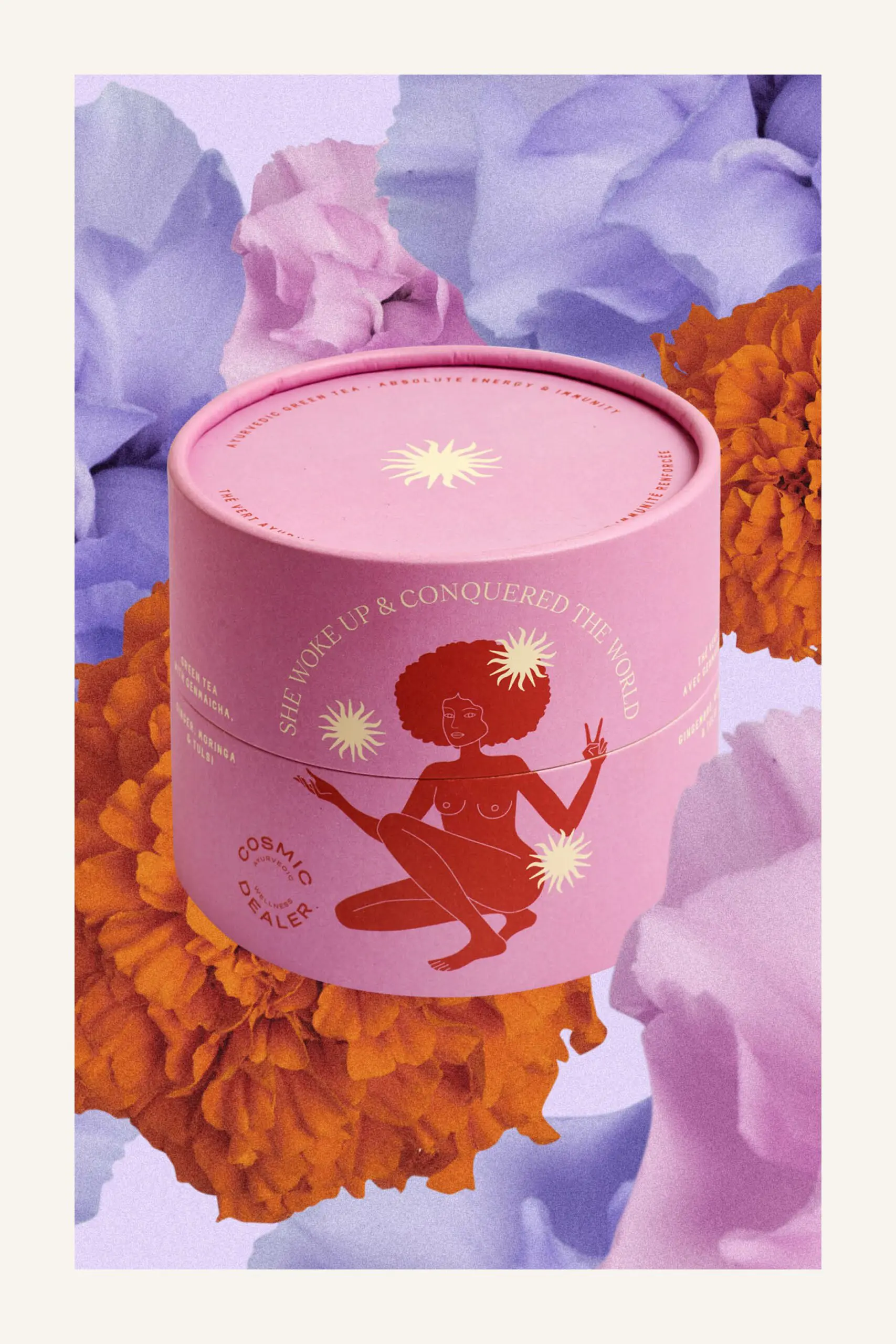 For Cosmic Dealers ‘She Woke Up & Conquered the World‘ indeholder nemlig ikke kun grøn Sencha og japansk genmaicha, der i sig selv er fyldt med antioxidanter og energi. Den indeholder også Tulsi som i ayurvedisk medicin kaldes for livets eliksir og ‘the queen of plants’. Den går også under navnet hellig basilikum (du finder i øvrigt også ingrediensen i dette fine badesalt).
