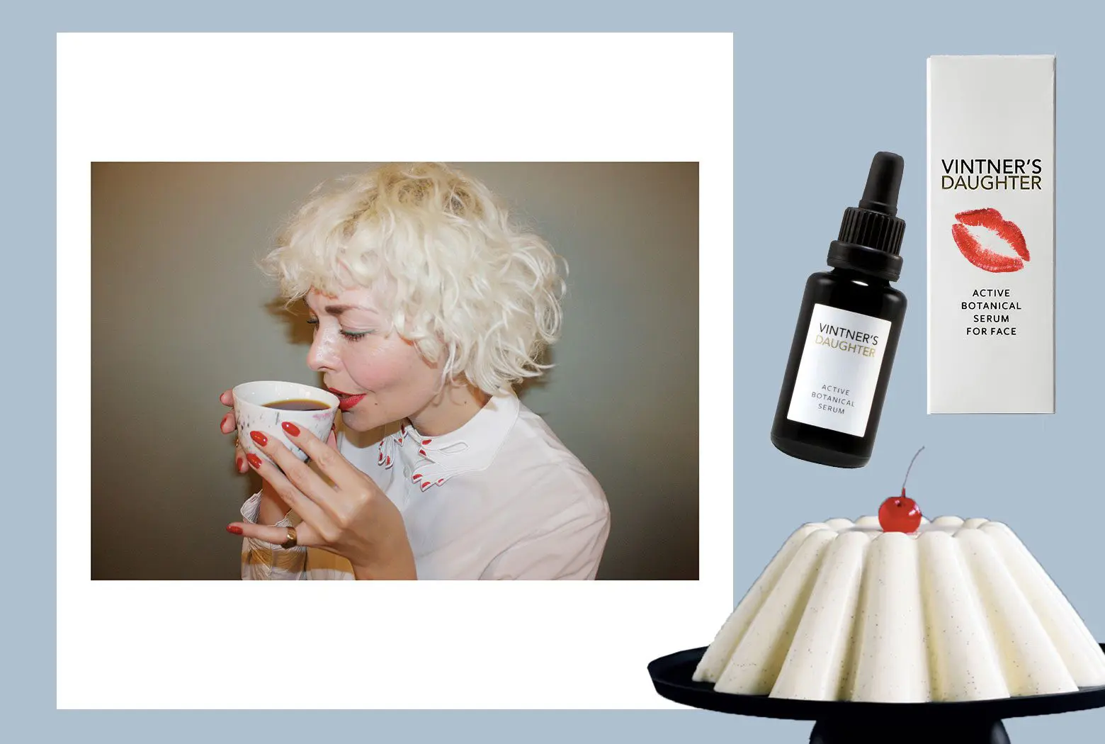 Q: Et skønhedsprodukt du ikke lever uden? A: “Hårshampooen Be Curly fra Aveda, som jeg har brugt siden jeg var 18-19 år parret med deres Brilliance balsam. Det eneste, der fungerer til mine krøller. Og så melder jeg mig i koret af Vintner’s Daughter-fans. Den ansigtsolie gør underværker. Jeg er den rødkindede type, der er vældigt sart og nemt får rødmen og varme kinder. Olien giver min hud ro og en glød, der trækker væk fra det rødlige.”