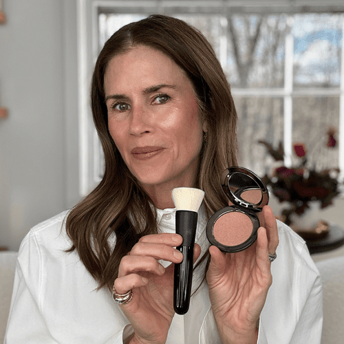 Og voila – kindbenen bliver formet og fremhævet samtidig med at den varme ferskenfarve giver liv til hele ansigtet.