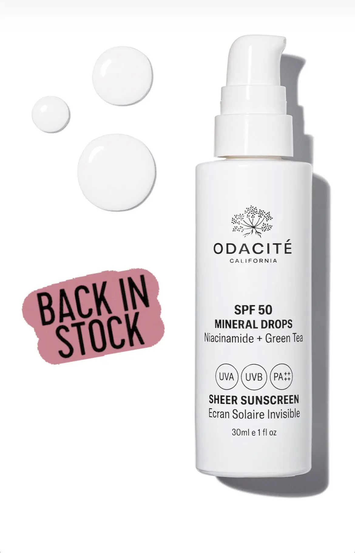 Sheer Sunscreen hedder den, og den er virkelig ‘sheer’, altså helt let, smuk og usynlig på huden. Det er helt sikkert også derfor, at den er blevet revet af hylderne i en grad, så det lager, Odacité havde forventet skulle holde året ud, var udsolgt efter få måneder (dens unikke indhold af niacinamid, hyaluron og grøn te har helt sikker også noget at gøre med det).