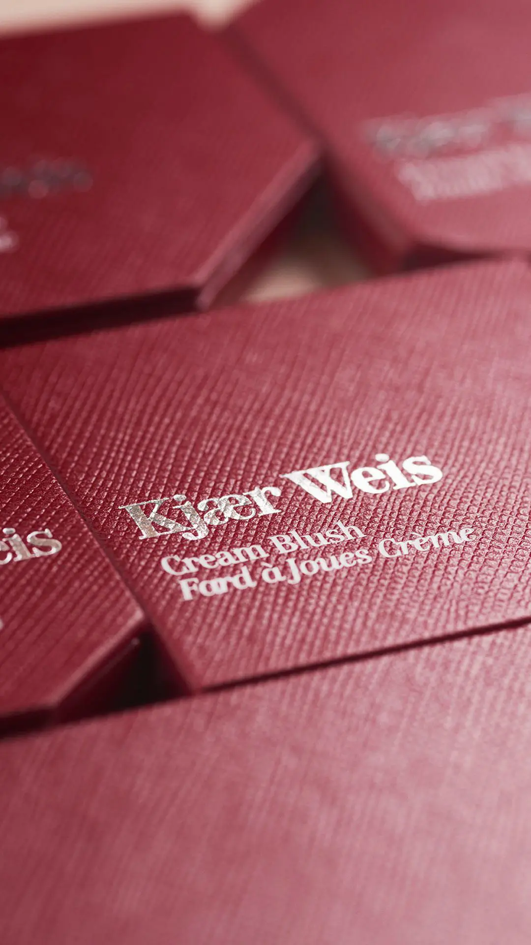 Vi taler de fine røde æsker til Kjær Weis makeup-refills som er lidt lettere i tasken end de ikoniske sølvæsker som produkterne ellers kommer i. Du kan købe dem hos os for vi har fået dem på hylderne som de første (sammen med Kjær Weis selv, naturligvis).