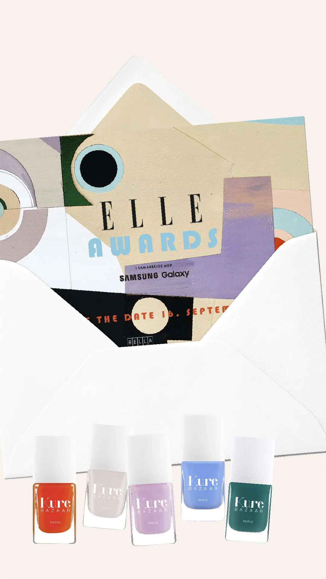 Men vi blev alligevel inspireret til at matche lidt. For i aften afholder ELLE deres storslåede Style Awards og invitationen var så fin (skabt af kunstner Stine Regild, som man næsten skulle tro havde været forbi vores neglelakhylde efter farveinspiration), at vi ikke kunne lade være med at matche bare en smule.