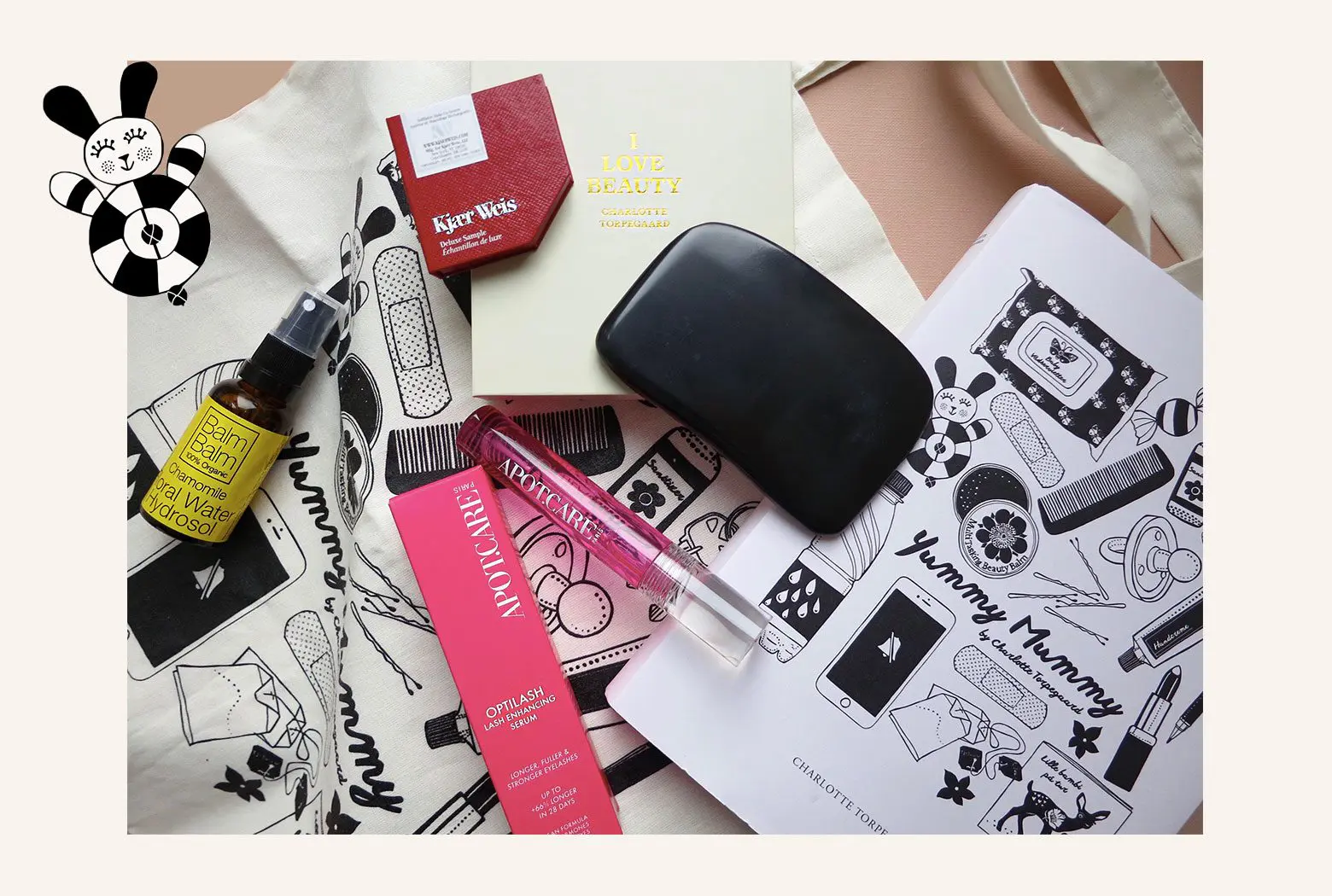 Du får også det fine økologiske Yummy Mummy-net, der er perfekt som pusletaske on the go, vores uundværlige Gua Sha, der er eminent til at mindske væskeophobninger og ømme graviditetskroppe, og virkelig god til ømme ammeskuldre (jeg smider fluks tips op i næste indlæg), Optilash vippeserum som må bruges af gravide og ammende og som er perfekt når du ikke når mascara om morgenen, yndlingsblushen Sun Touched, der giver dig glød i kinderne også når du ikke har sovet samt den fine kamille-mist fra vores nye mor-barn-serie (der kan bruges både som et pift til din egen hud, hvor kamillen virker beroligende, men også til at spraye let i rummet eller på puden, når du og baby skal sove. Den er også god til kløende graviditetsmaver og røde babynumser).