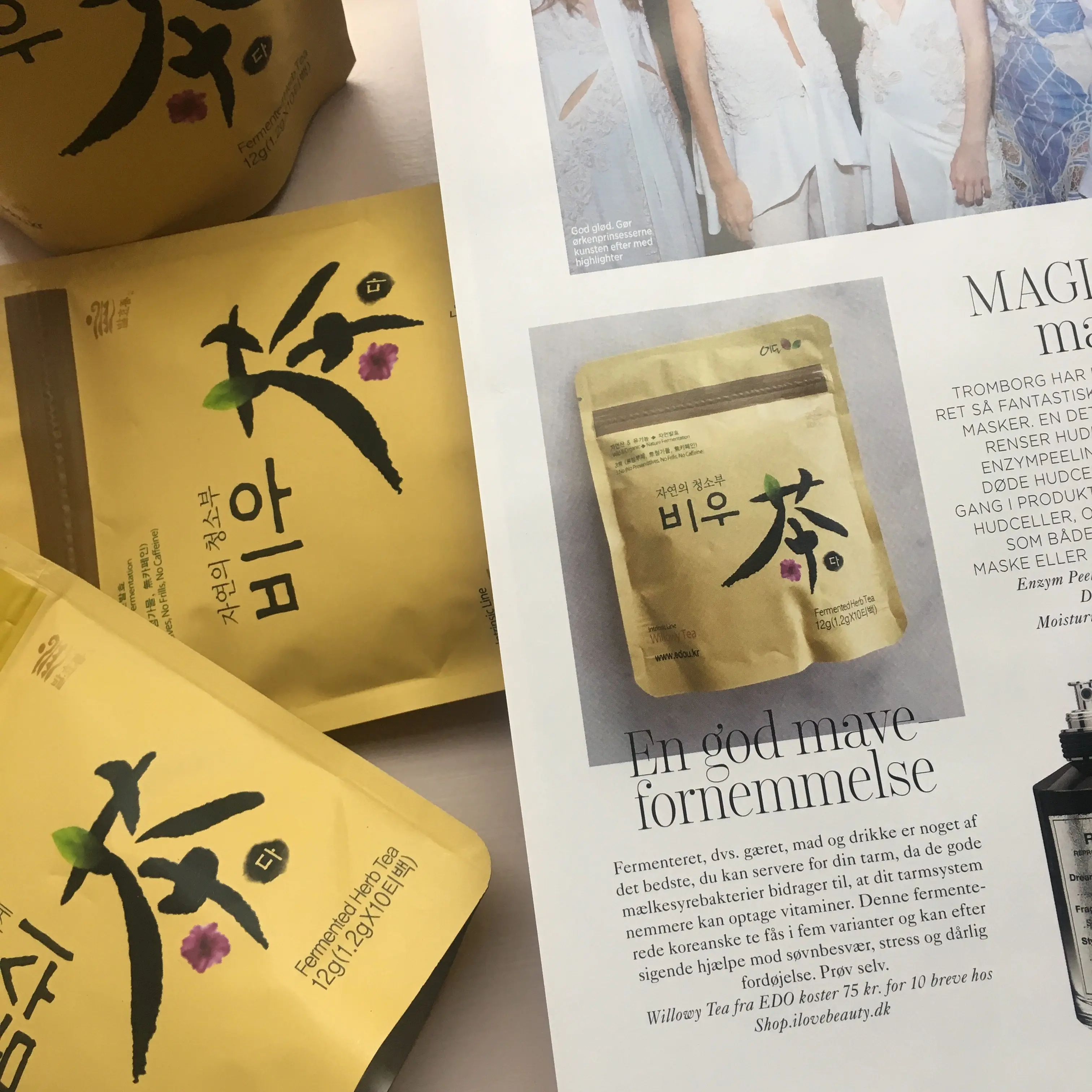 En god mavefornemmelse kalder Eurowoman mine fine koreanske fermenterede teer som jeg har slået et slag for flere gange herinde. Det er i deres nye nummer og det er dejligt at se, hvor mange, der har fået øjnene op for den koreanske te-terapi. I julemåneden var det Light Tea-versionen, der hittede gevaldigt (den er god til oppustede maver og balance i systemet) og den er stadig virkelig populær hos mange af jer. Selv er jeg storforbruger af den, der hedder Breathing, der rykker rigtig meget lige nu hos alle (os), der døjer med tidens tarvelige hoste og forkølelse. Good Night er også rigtig god i disse måneder (den skal drikkes i løbet af dagen og ikke lige op til søvnen. Der er jo ikke noget ved at falde dejligt i søvn og så skulle op for at tisse, vel?), mens Relief er til alle, der lever lige vel hektisk nok. Og så er der Willowy Tea, som Eurowoman har fremhævet. Deres skønhedsredaktør er nemlig gravid og den er helt perfekt til netop gravide, der måtte døje med vand i kroppen (eller hvis du har en tendens til at vågne hver morgen med hævede øjne). Apropos gravide, så finder du min Yummy Mummy-bog inklusive en gave lige her.
