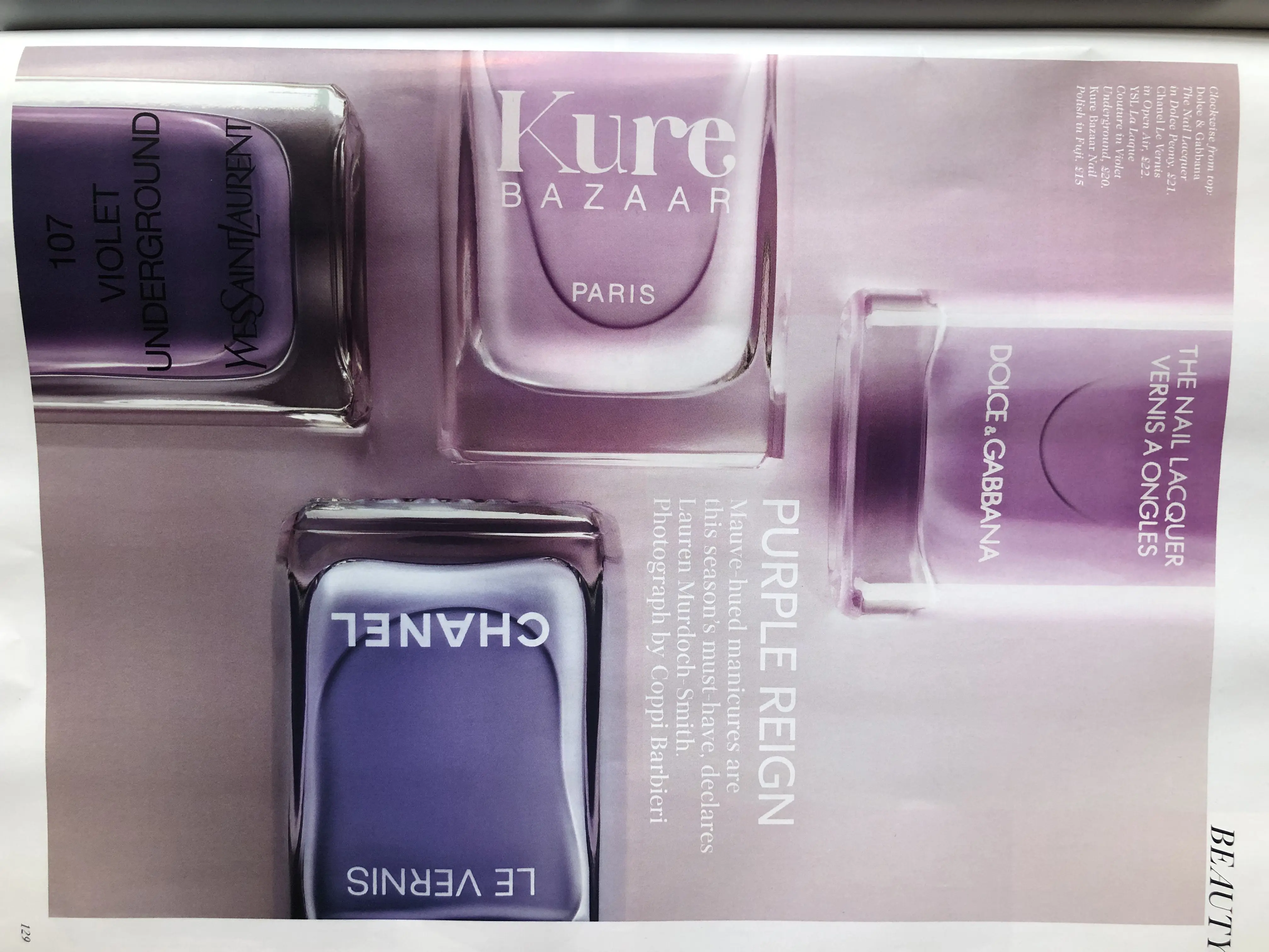 ‘Mauve-hued manicures are this season’s must have’ lyder det, og de har udvalgt fire favoritter. En af disse fire er også vores favorit i pavillonen, nemlig denne fine sag fra Kure Bazaar som ofte lander på mine fingre også (hey, man matcher vel den bænk og blåregn, man sidder ved).