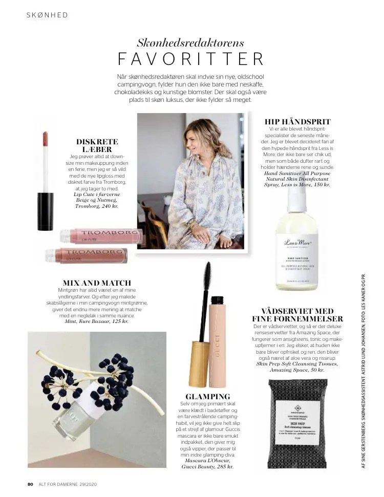 Tusind tak til Alt for Damernes skønhedsredaktør Sine Gerstenberg for at inkludere både vores fine – og yderst populære – mintgrønne Kure Bazaar-neglelak og vores velduftende – og endnu mere populære – handsanitizer i seneste nummer, hvor Sine anbefaler sine favoritter til sommerferien.