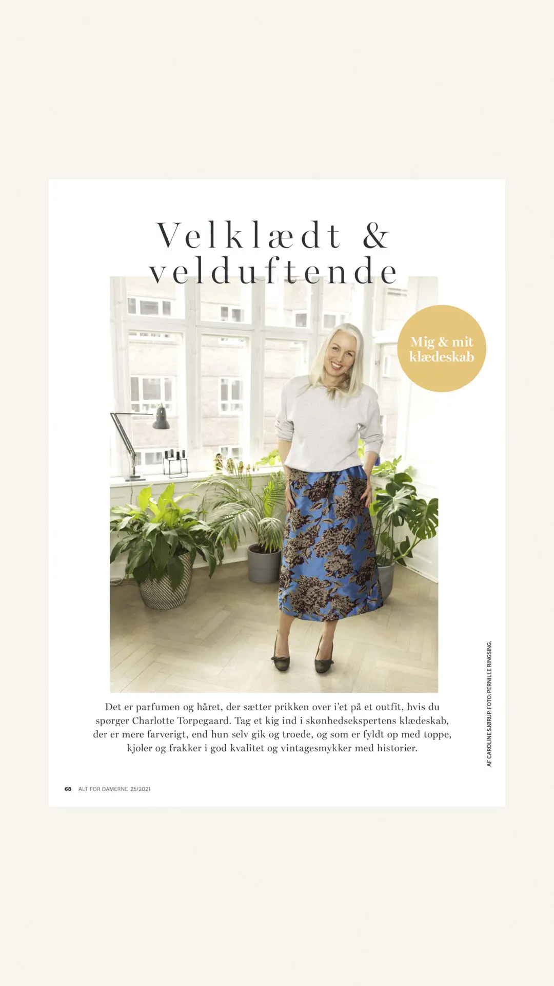 For nylig havde jeg besøg af Alt for Damerne herhjemme, hvor de kiggede i både mit klædeskab og mine skønhedsgemmer. Det er ude i denne uge sammen med et interview om mine tøjvaner og -uvaner, hvis man kan kalde det dét. Samt selvfølgelig de skønhedstips jeg overhovedet kunne snige ind.