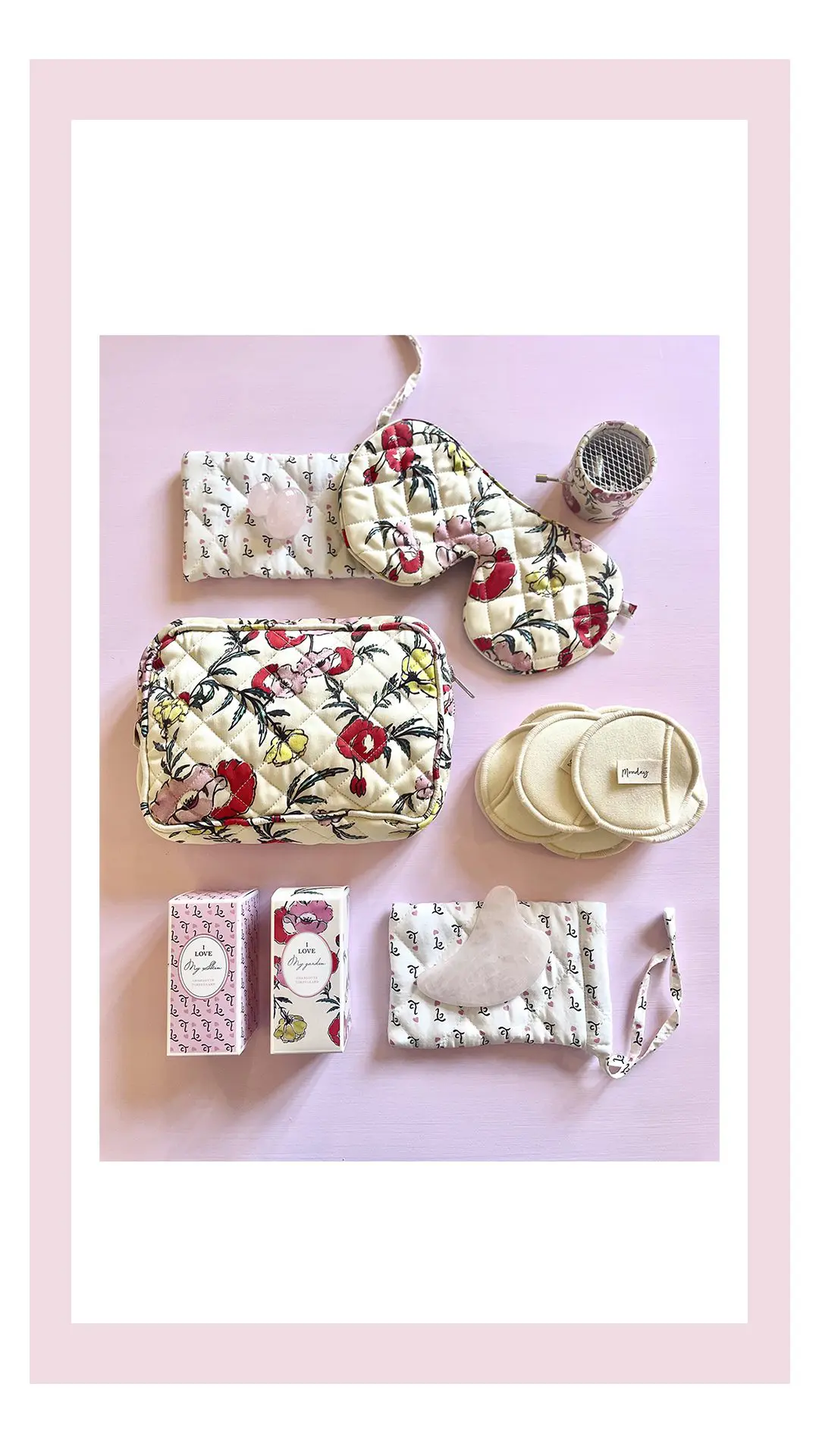 Og ikke en hvilken som helst konkurrence. Vi har nemlig samlet alle de produkter, vi har lanceret i eget navn de sidste 5 år, og det er faktisk ikke så lidt. Vi taler vores fine silkemakeuppung med blomsterprint, der er håndtegnet af Helene Blanche (mange bruger den også som clutch, når de skal ud), og silkesovemasken i samme print (der med garanti sikrer dig din skønhedssøvn).